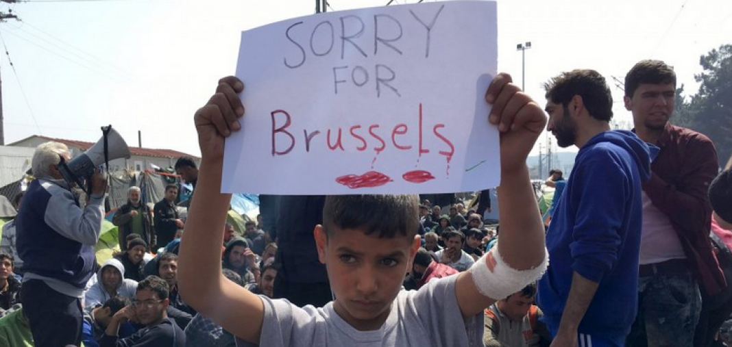 Tg2 è l’unica testata che riesce a proporre un’impaginazione articolata, nel tentativo riuscito di “non essere travolto” dagli eventi luttuosi. Mentana, invece, sui saluti finali confessa che non è stato possibile parlare d’altro. Ma se dobbiamo indicare in una serata così difficile una scelta giornalistica che merita di essere segnalata, è al Tg3 che dobbiamo rivolgerci per la decisione di mettere in parallelo le immagini di Bruxelles con quelle del campo di Idomeni, con i profughi che hanno reagito alle notizie degli attentati gridando che le vittime europee sono vittime dell’Isis quanto loro. Il bambino che espone il cartello “Sorry for Bruxelles” è una bella icona che demolisce l’equazione profugo-terrorista.