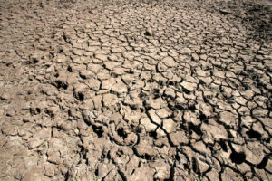 Dry, cracked earth close to the silted up Kioga river, which feeds into the Great Ruaha river, Ruaha Catchment, Tanzania.