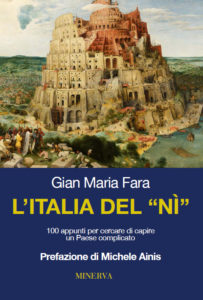 Cento “appunti” per descrivere l’Italia, le sue contraddizioni, i problemi che la affliggono, le sue abitudini, le sue sfide e il futuro possibile. Dopo La Repubblica delle Api, pubblicato nel 2013, Gian Maria Fara, sociologo e Presidente dell’Eurispes, torna a dialogare con il lettore e a farlo riflettere con un nuovo volume: Il Paese del “nì”. 100 appunti per cercare di capire un Paese complicato (Edizioni Minerva), con la prefazione di Michele Ainis.