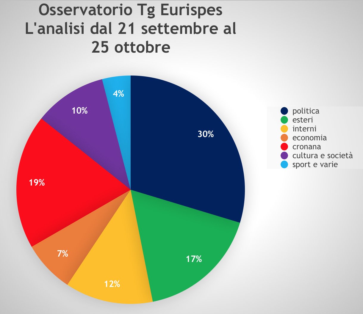 La tregua nel nord della Siria, prolungata martedì dalla Turchia di altri 6 giorni, comporta l’uscita di questo tema dai titoli, ma risulta presente in maniera significativa nei servizi dei Tg Rai, in particolare nel Tg3.